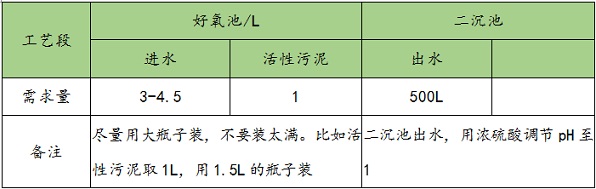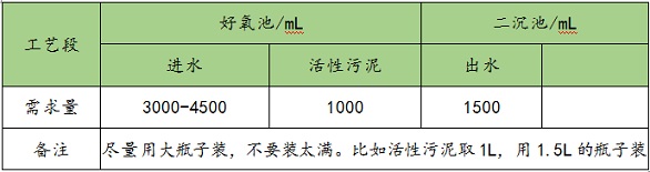 好氧池:盡量用大瓶子裝,不要裝太滿。比如活性污泥取1L,用1.5L的瓶子裝