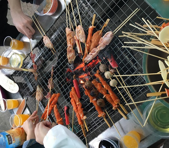 燒烤現場,大家主動分工行動,洗菜、切菜、燒肉、拍照,忙得不亦樂乎,都在為了午餐而各顯身手。有些同事的燒烤技術實在不敢恭維,把肉都烤成了“黑炭”;有的同事相當出色,看他們烤出來的肉、雞翅,不僅色澤誘人,而且香飄四溢!大家烤得認真,吃得津津有味,燒烤與飲料搭配,歌聲與歡笑點綴,顯露出長隆人之間單純的情誼;你一言、我一語,讓成員們認識了彼此,也熟悉了彼此。