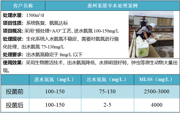 在生化系統中直接投加經過精心篩選培養的對氨氮有高效降解能力的超強硝化細菌--氨氮激活菌201,同時優化各項運行參數,使氨氮激活菌201在系統內快速繁殖,以此來改變活性污泥中細菌的種群結構,進而縮短啟動/恢復時間,使系統更好的抗負荷沖擊,從而提高氨氮去除效率,維持系統運行穩定性。