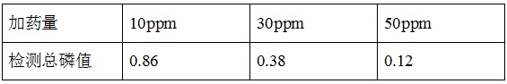 針對(duì)客戶的生化出水用我司清源牌除磷劑做3個(gè)梯度的小試,加藥量分別為10ppm,30ppm,50ppm,最終檢測(cè)結(jié)果如下表: